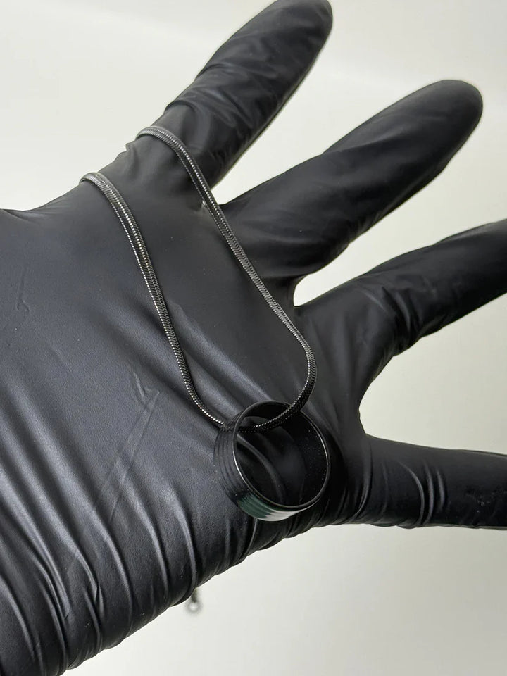 Elevate your look with this sleek Black Chain with Ring. Perfect for layering or wearing solo, this versatile piece adds a touch of edge to any outfit. Lightweight, durable, and designed for everyday wear. A must-have accessory for a bold statement!