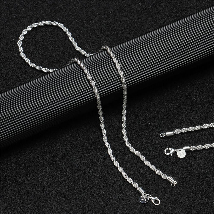 Unisex Stainless Steel Rope Chain With Free Rope Bracelet – Silver